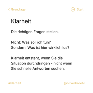 Die Antwort: Menschen helfen, in den entscheidenden Momenten Klarheit zu erzeugen und danach wirksam zu handeln.